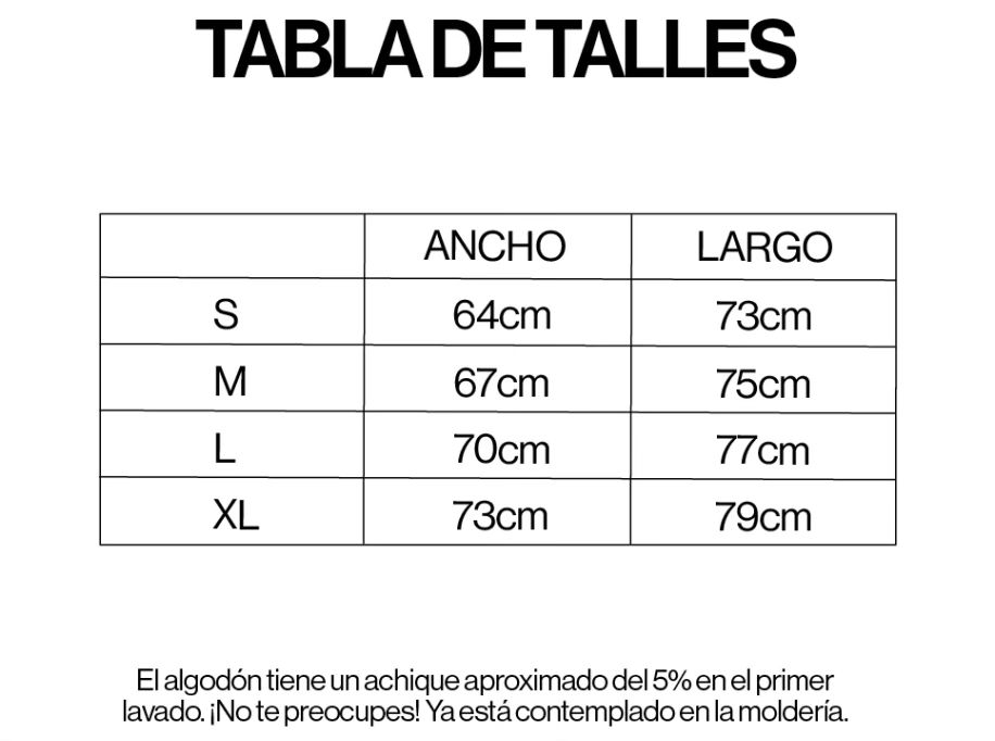 Tip: si preferís un fit más ajustado, elegí un talle menos de tu habitual.